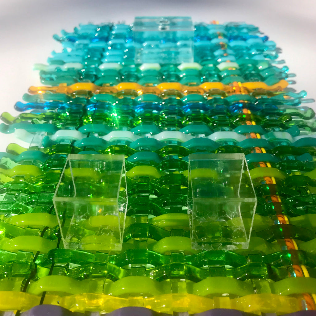How to use: 1) Rewash glass panel, Houdini and Spacer Blocks with soapy water, rinse well and dry with a soft cloth. Like all acrylics, do NOT wipe the Houdini with alcohol, acetone, or any other chemical as they can cause crazing. 2) Plan the location of the Houdini and Spacer Blocks. If installing two Houdini's, match measurement from the upper edge of panel to center of the hole on each Houdini. 3) Wipe back of art panel at mounting location with a lint-free alcohol wipe and let dry. 4) Put a small dollop of "Industrial Strength High Viscosity E6000" adhesive (NOT regular "Industrial Strength E6000" craft adhesive) on the cloudy side of the Houdini and spread evenly with a palette knife to cover cloudy surface evenly. 5) Lightly press the Houdini on to the back of the art panel to transfer some adhesive onto the art panel surface. Remove Houdini. 6) Wait 90 seconds for adhesive to start to cure. 7) Press Houdini back onto art panel at the mounting location, this time pressing firmly. 8) Repeat Step 3 to 7 for each Spacer Block. 9) Wait 3 days for a complete cure and hang on a upward angled nail or screw.